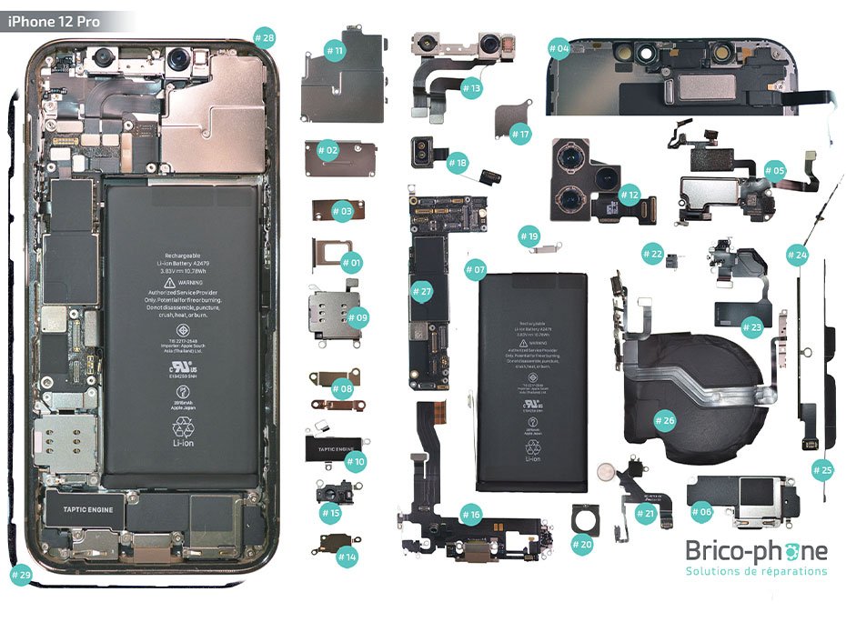 Vue éclatée des pièces détachées de l'iPhone 12 Pro